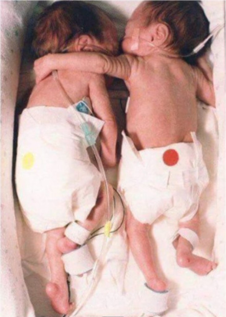 Both twin sisters eventually survived and grew into strong young women. The picture below came to be known as the rescuing hug and would change a part of our understanding of medicine.
